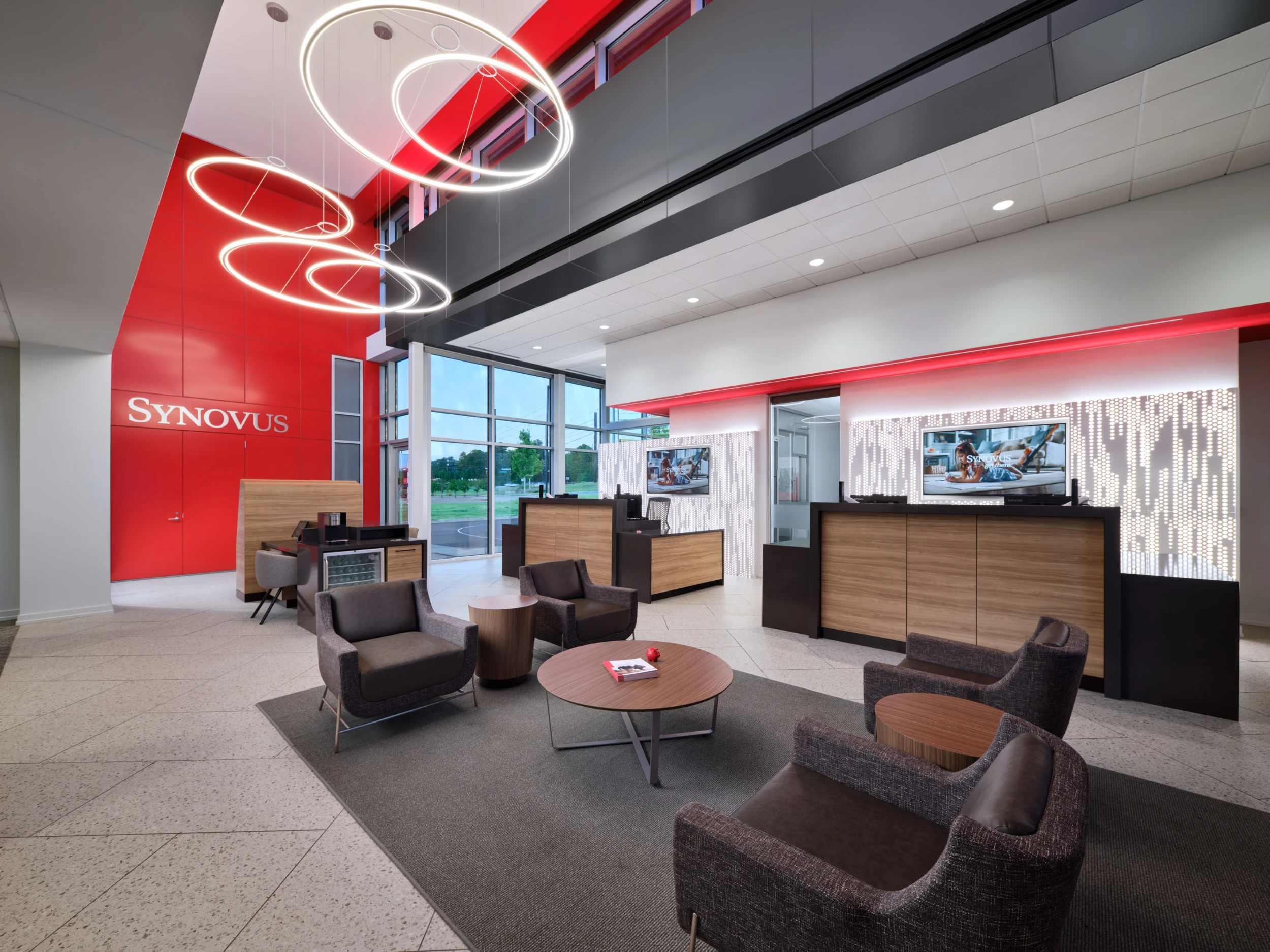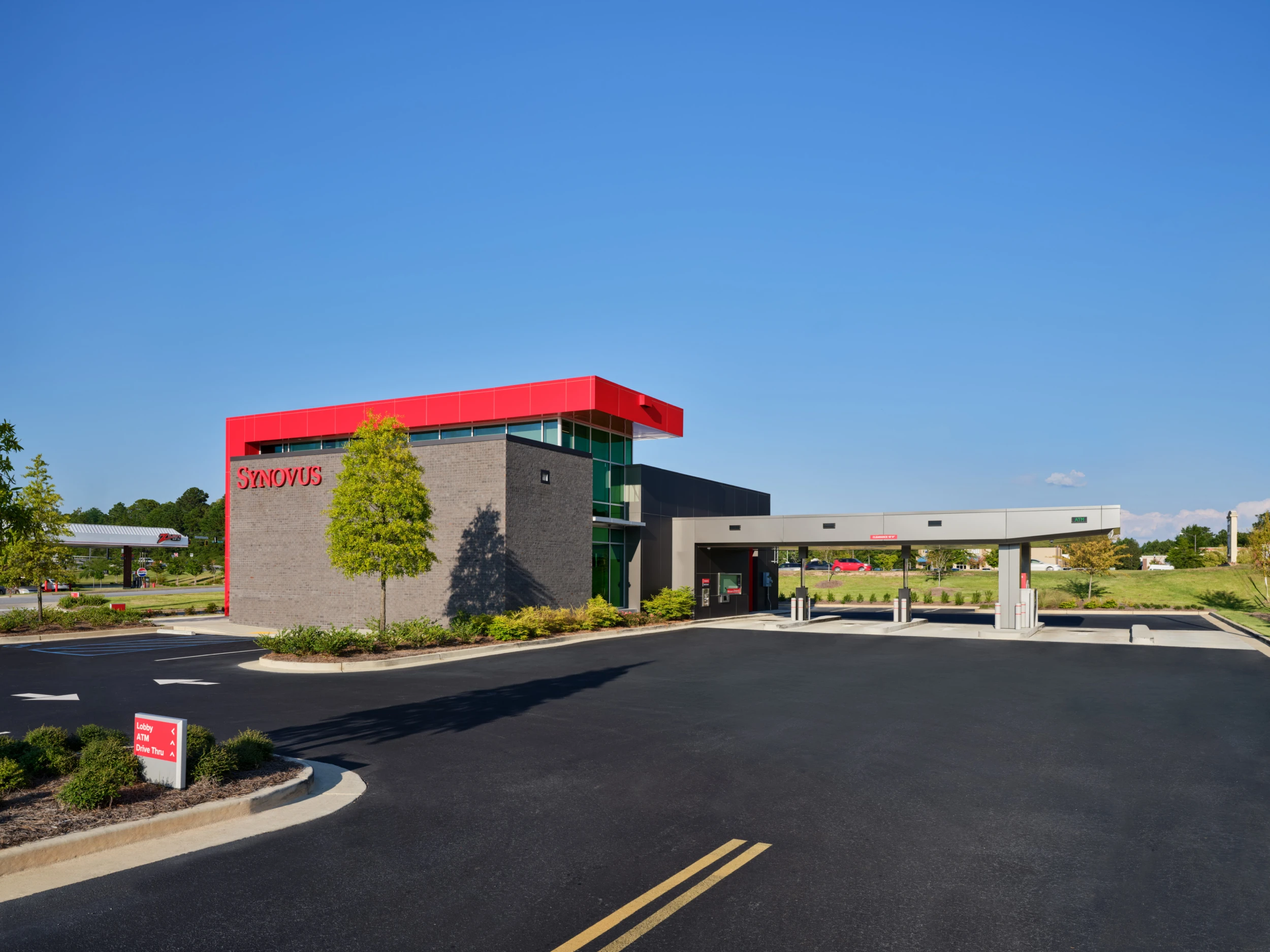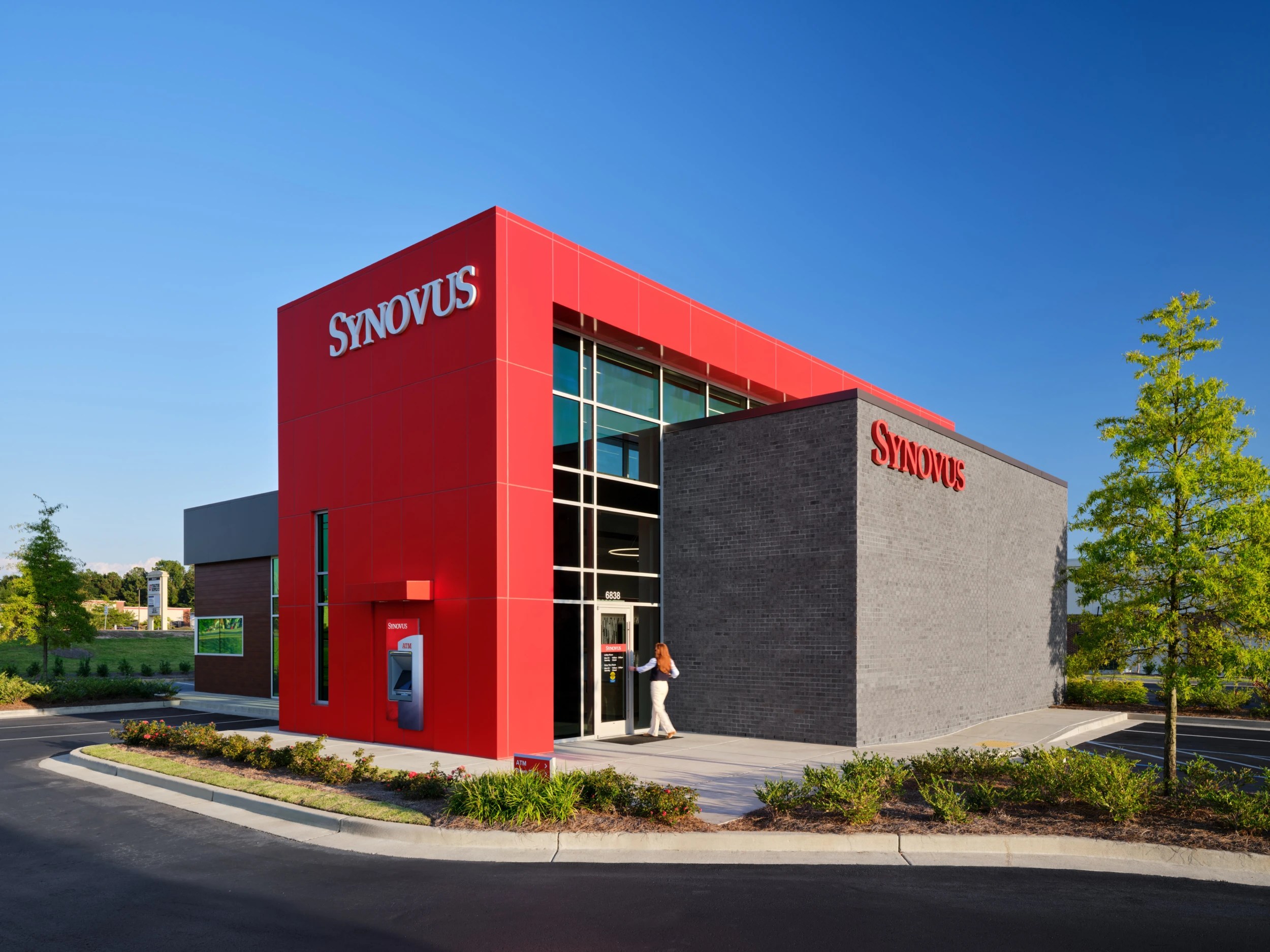 Designed to engage the community from all sides, the building features locally inspired exterior materials that reference the area’s history, along with energy-efficient glazing and shading strategies. The result is a customer-focused branch that reinforces Synovus’ brand while setting a new standard for modern bank design.
